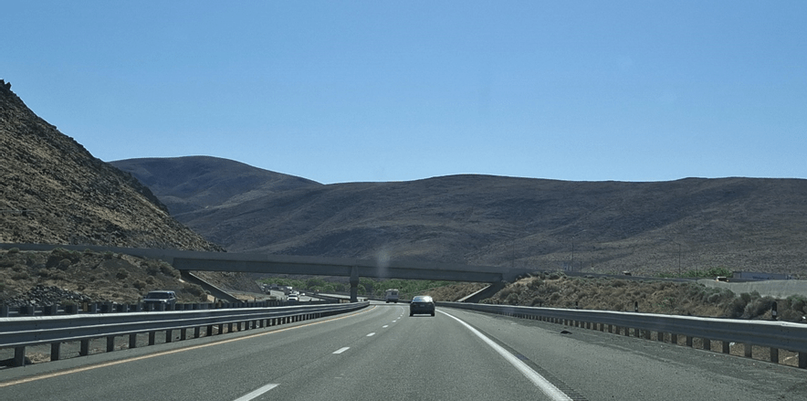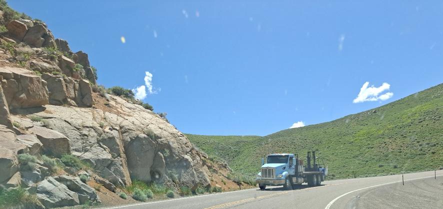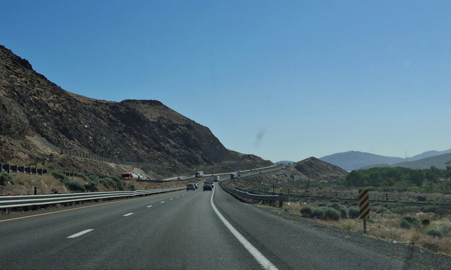 Dizer que se percorre a estrada de forma completamente solitária também não é verdade. Cruzamos com outros veículos. Sobressaem-se alguns caminhões, motorhomes, trailers e outros equipamentos voltados ao lazer, como os barcos (será que estavam indo para o Lake Tahoe?). Fiquei com a ideia de que ninguém que circulava pela rodovia, morava na região. Aliás, não se viam casas ou lugarejos, então é compreensível que essa seja uma rodovia de passagem e não de “ficagem”.