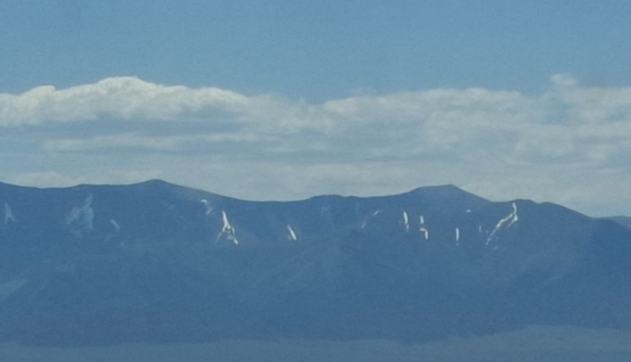 Mais adiante, estivemos frente a frente com elevações mais altas, onde a neve ainda remanesce nos picos, apesar do calor de 35 graus centígrados.