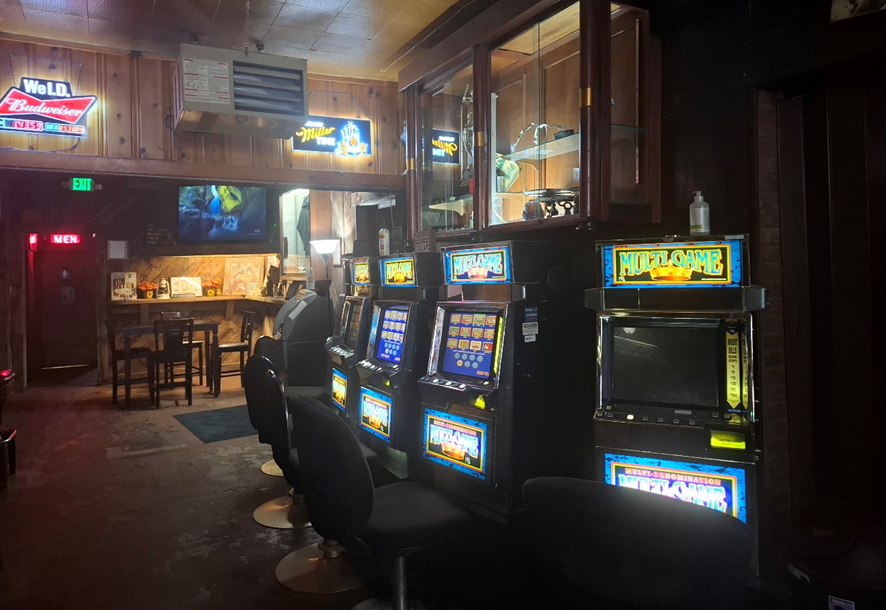 Ao ir ao banheiro, adivinhem o que encontrei na sala ao lado: um mini cassino!!! Observem o estado do carpete!!!