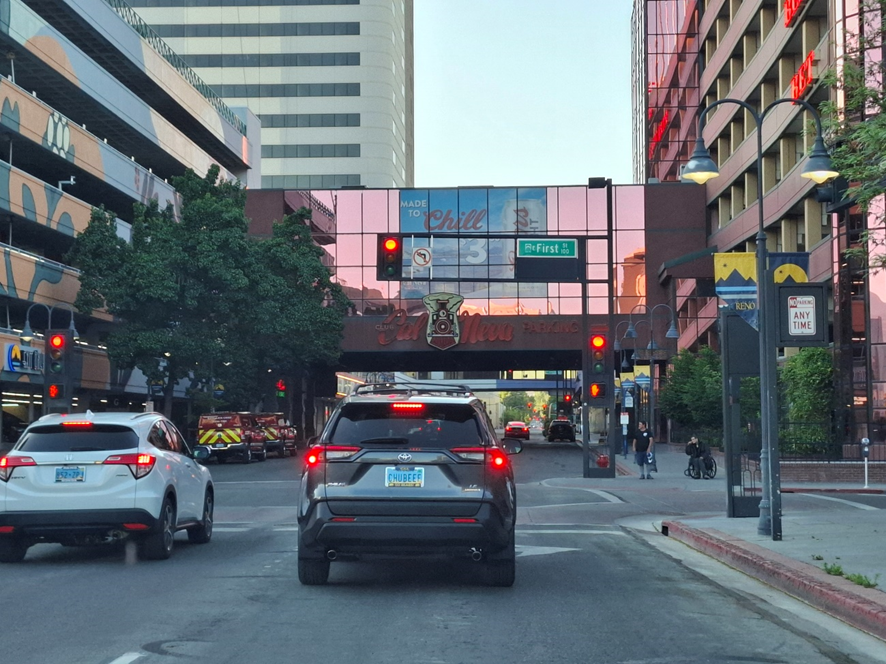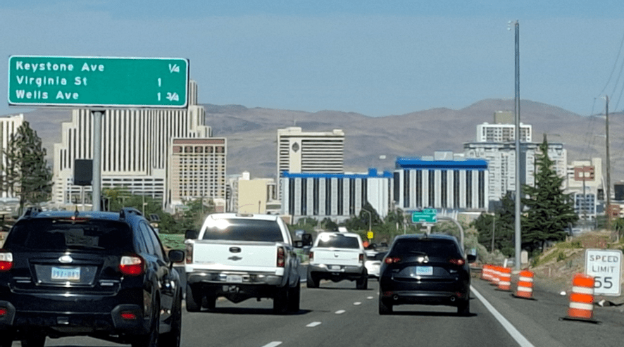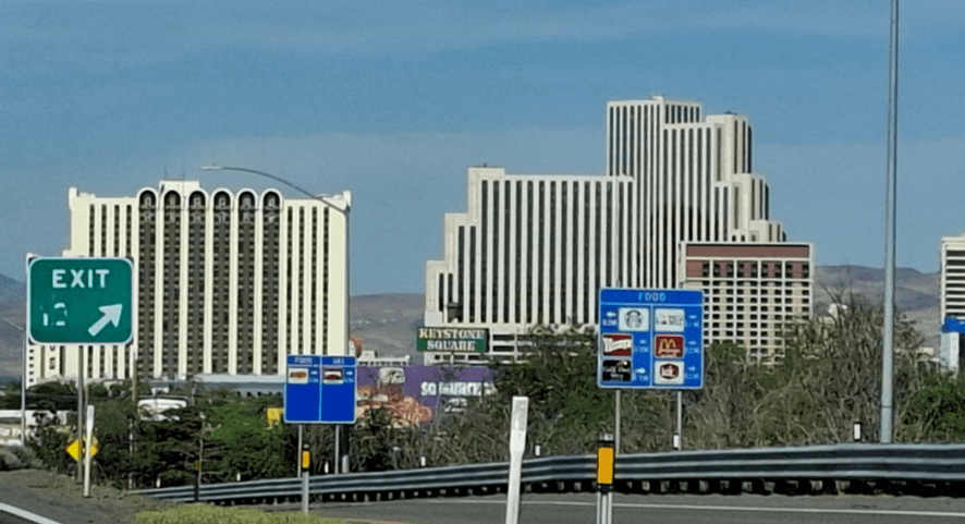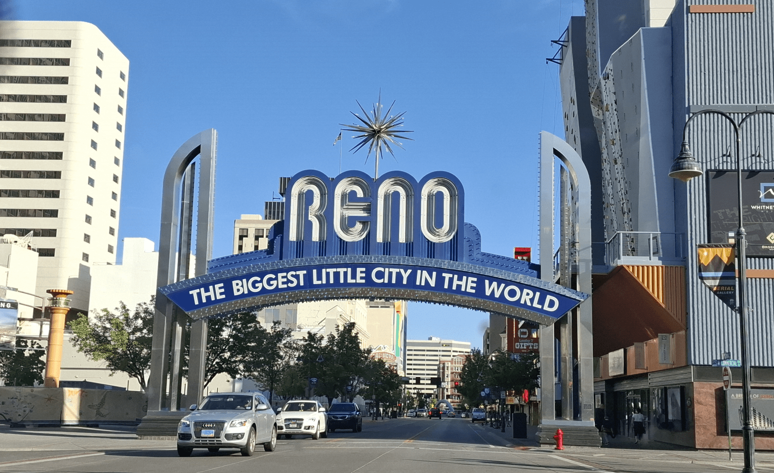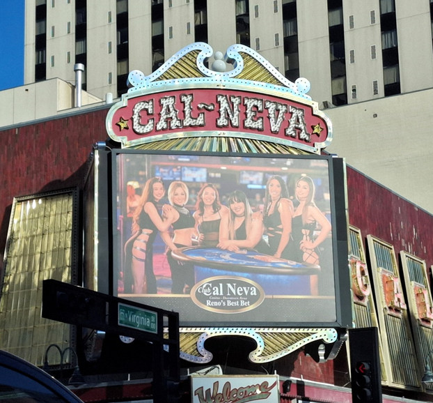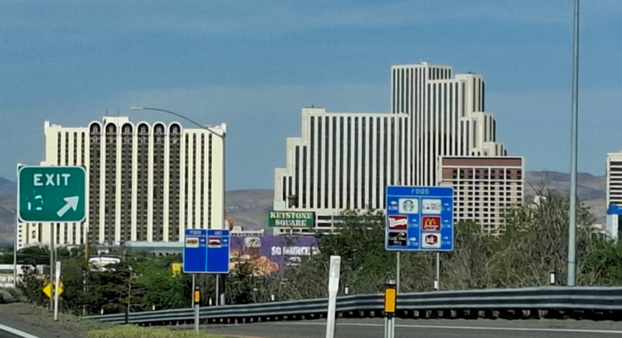 Nossa primeira parada foi Reno, situada muito próxima do limite com a Califórnia. É uma cidade de 264 mil habitantes, enquanto a capital de Nevada – Carson City – tem apenas 58 mil habitantes. A mais populosa de Nevada é Las Vegas, com 660 mil habitantes.