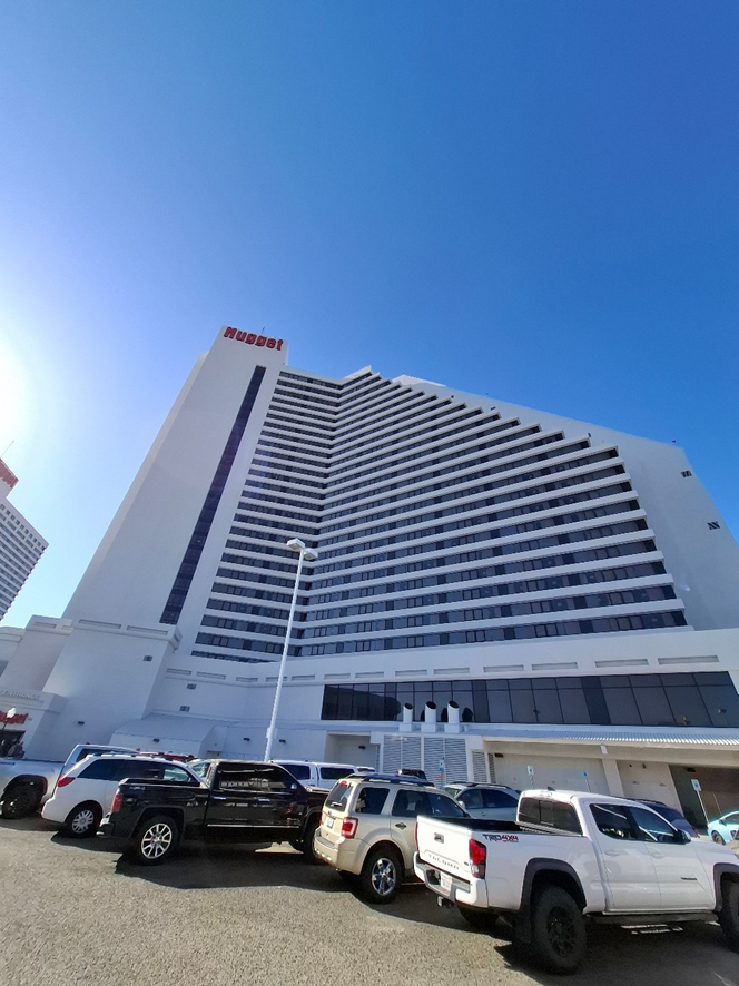 Este hotel tem mais de 1000 apartamentos e um prédio anexo para servir de estacionamento com vários andares. A chegada na cidade impressiona pelo skyline que os hotéis-cassinos impõem.