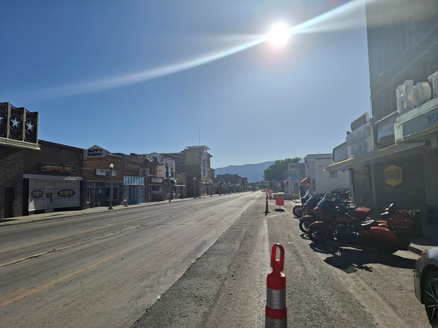 A partir dele fotografei a main street de Ely, para um lado e para o outro, o que te ajuda, leitor, a constatar que a cidade não é muito grande, pois é possível ver o fim dela em ambas as direções.