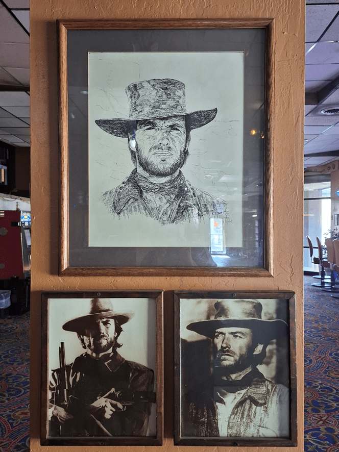 Adorei as fotos e o desenho do ator e cineasta Clint Eastwood, na coluna logo na entrada do hotel. Quem simbolizaria melhor o velho oeste estadunidense?