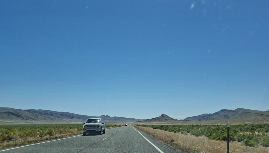 Pela Rodovia US 50 continuamos a atravessar o maior deserto dos EUA. Ele é denominado Great Basin Desert (Deserto da Grande Bacia) e compreende territórios dos estados de Oregan, Idaho, Nevada, Utah, Wyoming, Colorado e Califórnia, abrangendo mais de 409 mil km2. É muita terra! Seu solo é arenoso e com muitos cascalhos.