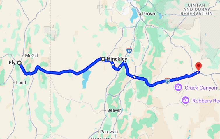 Em função dessas características do quadro natural é também um deserto urbano, pois as cidades que têm alguma relevância estão muito distantes entre si. Por exemplo, entre Reno e Salt Lake City são 830 km, entre Reno e Las Vegas, 711 km. Entre elas, os núcleos urbanos que existem são muito pequenos e foi assim que fomos parar em Ely (pronuncia-se Íly), que tem pouco mais de três mil habitantes e muito cassino, é claro, porque ainda estamos em Nevada.