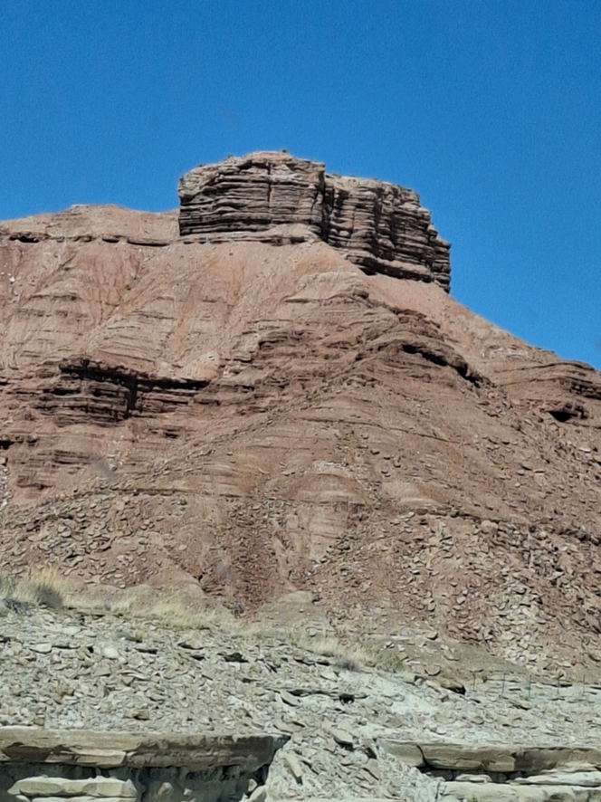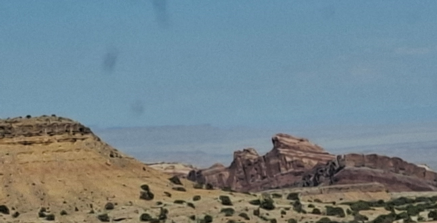 À medida que nos aproximávamos do nosso destino, os tons acinzentados que tínhamos visto na maior parte do deserto foram substituídos por formas de relevo impressionantes, e por tons terra ocre, que nos fizeram lembrar do Grand Cannyon. Não vou escrever nada, porque as fotos mostram (em parte, porque ficam aquém do que os olhos viram) a belezura que apreciamos.