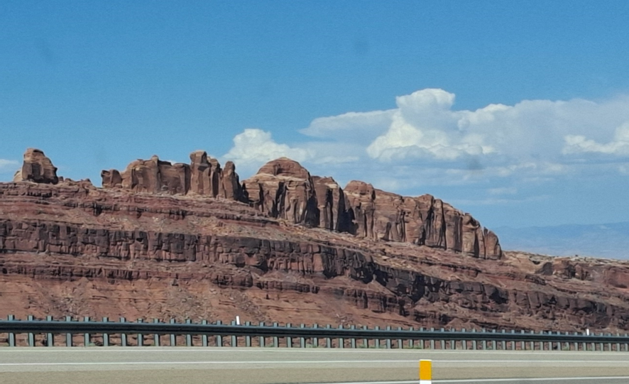 Quanto mais quilômetros percorríamos neste dia, maior era a sensação de que estávamos diante de uma mega tela de cinema, a cores e ao vivo. Quantos westerns ou mesmo filmes com enredos mais contemporâneos já assistimos, nos quais víamos paisagens como as que se seguem? Lembrei de Erin Brockovich com Julia Roberts; Bagdad Café com Marianne Sägebrecht e Carol Christine Hilaria Pounder; Thelma & Louise com Geena Davis e Susan Sarandon e, por fim, Paris Texas com Nastassja Kinski, para não entrar na lista dos de far west que é imensa.