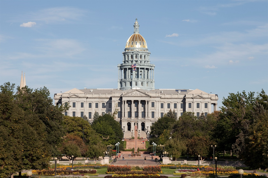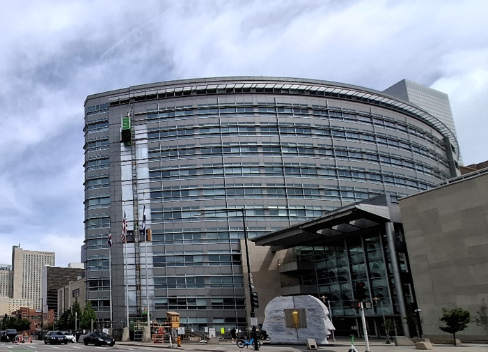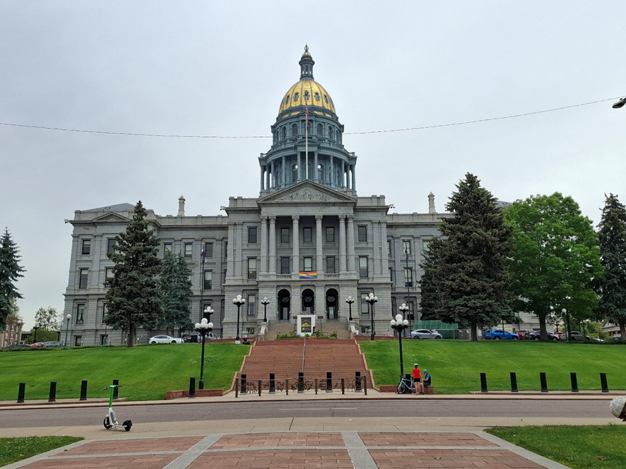 Logo adiante nos deparamos com o Colorado State Capitol que está edificado numa pequena colina que o posiciona acima do nível topográfico médio da área central. Acho que gostei mais do capitólio de Sacramento pela sua brancura, mas este é, sem dúvida, mais portentoso. Segue a foto que fiz e a do seu site oficial.
