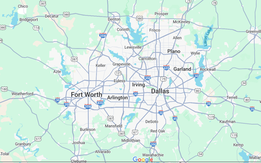 Ademais, Dallas está conurbada com Fort Worth que tem quase um milhão de habitantes, embora entre as duas, o percurso demande quase 50 minutos de carro, porque a cidade estendida é parceira do automóvel – quando mais distante se habita, mais se depende deste veículo que é a “alma” do estadunidense. Comparativamente ao modelo de cidade europeu, a dos Estados Unidos notabiliza-se pela pouca presença proporcional do transporte público – todas as classes sociais podem ter acesso ao carro e a grande maioria das pessoas faz essa opção para se deslocar.