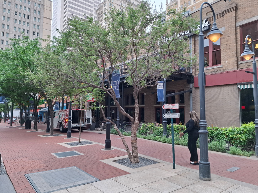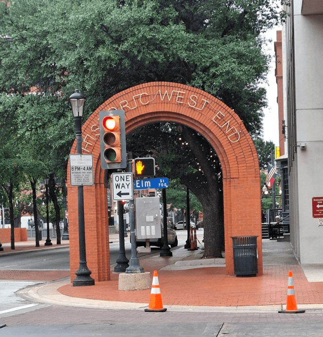 A cerca de 200 metros da esquina fatídica está o distrito denominado Historic West End, marcado por construções em tijolo à vista do século XIX, quando esta parte da cidade era caracterizada pela presença de atividades industriais e de armazenamento. Hoje, recuperada e refuncionalizada, serve de moradia, pois algumas das construções foram adaptadas para apartamentos, mas tem também pequenas oficinas e escritórios e muitas áreas de estacionamento. Por ali, se mantém os trilhos originais dos bondes por onde hoje corre um trem de superfície que tem muitos vagões e é bastante silencioso.