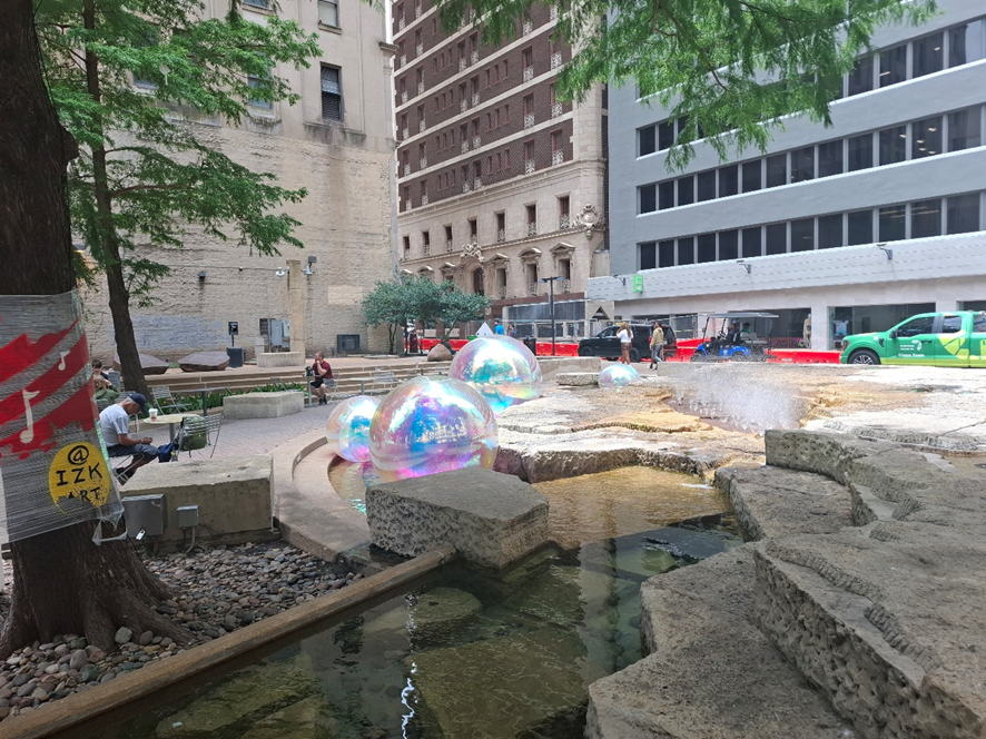 O espaço público de Dalas também tem mobiliário urbano e instalações lúdicas que possibilitam uma relação de brincadeira entre a cidade e o transeunte, como as bolas flutuando na água casa ou o maravilhoso olho, que está no começo deste capítulo de viagem. Ele é de uma boutique com vitrines elegantes e preços altos, que expõe a obra de arte em sua área externa.