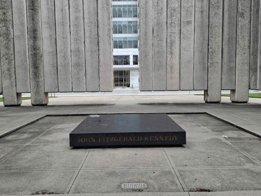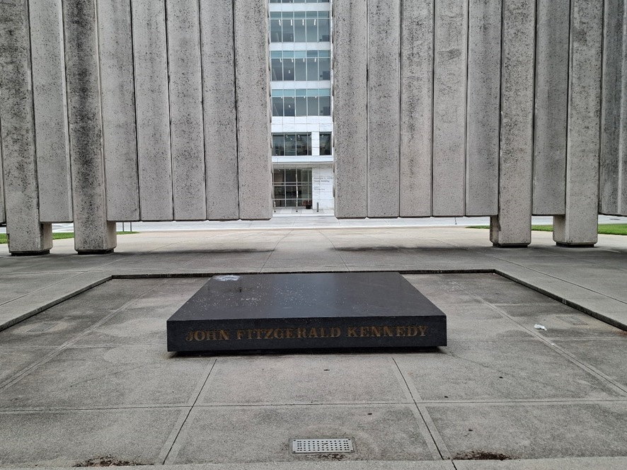 A área por onde passava o presidente, quando foi alvejado, é marcada por essa construção de estilo bem mais antigo, que é conhecida como Red House. Pelos painéis em granito com explicações sobre o fato, que havia numa pequena praça em frente, fiquei sabendo que o carro passava por uma via lateral a este prédio, já concluindo o cortejo pelo centro principal, quando ocorreu o assassinato.