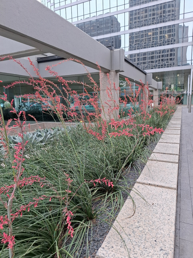 Termino o capítulo, uma foto dessas flores bonitas que estão por todo lado aqui no Texas. Elas se parecem com a russélia, que temos no Brasil, mas é mais bonita porque as hastes são mais firmes e as flores então ficam para cima, mas se mexem com qualquer ventinho.