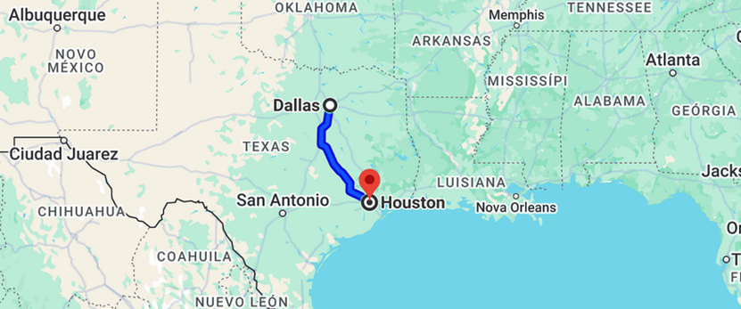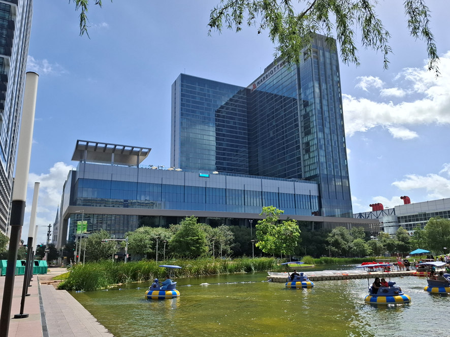 Finalmente, chegamos à cidade mais populosa do Texas: Houston com seus 2,3 milhões de habitantes. Viemos de Dallas e percorremos 385 km, conhecendo paisagens amenas, com pouca variação de altitude e, na maior parte do caminho, com bastante vegetação verdejante. Ficou para trás o predomínio das áreas áridas e semiáridas, que estão no norte do Texas, em Nevada, Utah e Colorado. Passamos das altitudes que atravessamos nas Rochosas para, agora, cruzar planícies onde a criação de gado e a agricultura predominam. Fizemos o caminho do centro sul para o sul dos Estados Unidos.