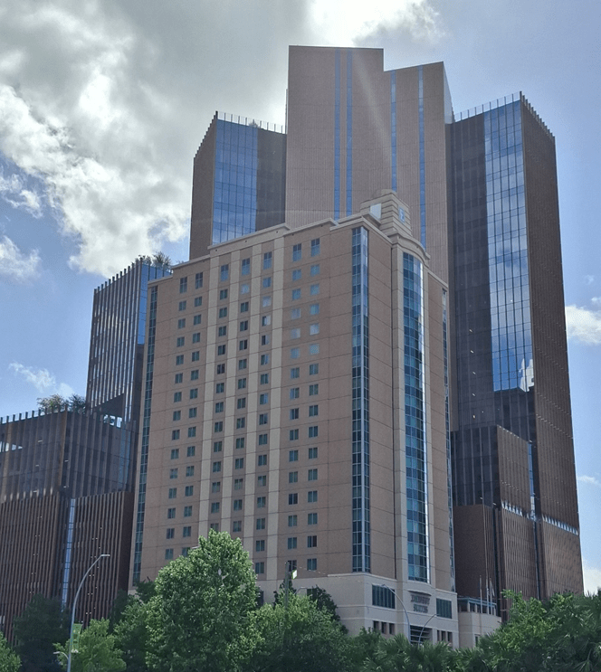 O centro principal da cidade (nem sei se posso chamar assim) é caracterizado pela presença de muitos edifícios altos e, ao que parece, predominantemente ocupados por serviços (escritórios de profissionais liberais, sedes de empresas, centros médicos etc.). No nível das vias, o que há são locais de restauração, a maior parte fast foods. Não se vê comércio propriamente dito – lojas de roupas ou calçados, por exemplo – mas pode ser que haja um setor pelo qual não passamos, embora tenhamos percorrido a pé mais de 5 km pelas ruas desta área da cidade.