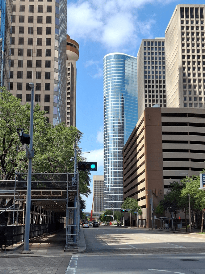 Como chegamos a Houston numa sexta-feira ao final do dia, achamos melhor visitar o centro no sábado de manhã, na expectativa de que houvesse o movimento comum neste setor da cidade, mas, como o predomínio são os serviços e deduzo que essas atividades não funcionam neste dia da semana, as ruas estavam quase desertas.