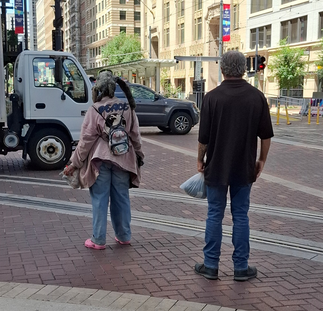 Aqui ou ali, eu vi: – uma jovem que caminhava com um copo térmico de café entrando em seu prédio (cena que já vimos em dezenas de filmes e sempre intrigam porque, afinal, parece-me que é mais fácil fazer um café em casa do que sair para comprar…); – um homem, de bermuda, chinelo e meia, fazendo seu pet passear, por isso andava com o saquinho para recolher as fezes (não tenho paciência para isso e admiro quem tem); – um casal de homeless que, às 10h da manhã, já tinha tomado umas e outras (ou será que ainda são aquelas do dia anterior?); – um casal, ela trajada à muçulmana e ele completamente fantasiado de Nike-Adidas-seilámaisoque; uma mulher elegantérrima saindo de um café anexo a um museu com dois adolescentes que pareciam animados para o final de semana com a mãe (ou seria a tia?); – dois turistas brasileiros fotografando tudo que viam (que impressão será que eles passavam para os outros que pareciam todos moradores de Houston?).