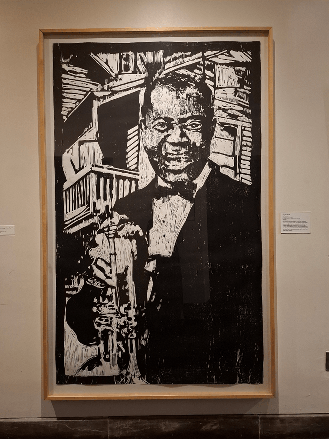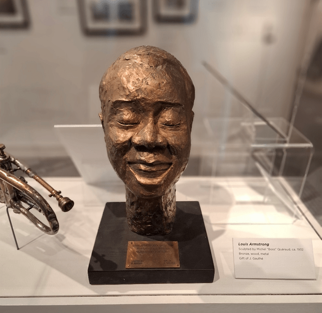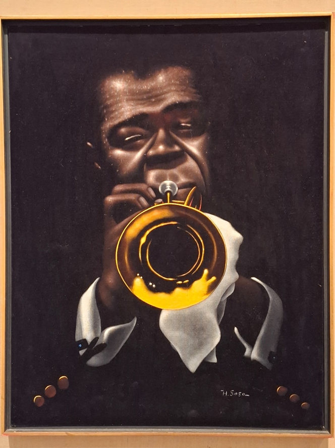 O contrário, o que foi ele para o jazz pode ser atestado pelo número de representações artísticas deste ícone. Que eu tenha observado e registrado, havia duas esculturas em bronze e três telas em estilos diferentes imortalizando Louis Armstrong.
