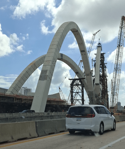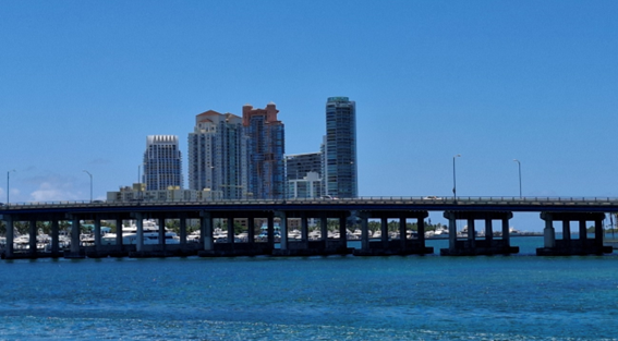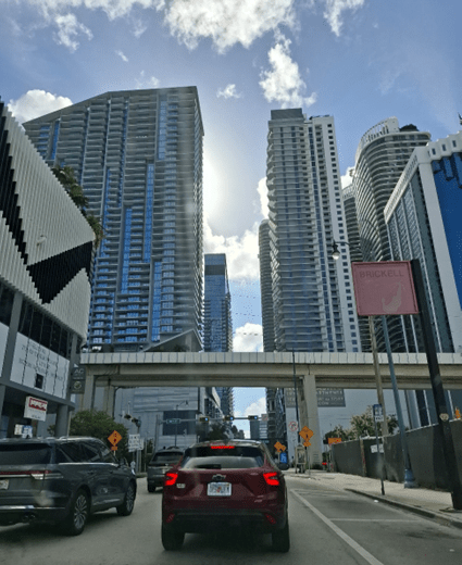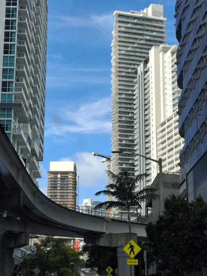 Não bastasse o sistema complexo de vias e viadutos que cortam a cidade e a ligam a Miami Beach, há mais vias em construção para dar vazão ao grande número de carros que circulam na cidade, embora ela tenha um metrô e um pequeno trem de superfície, também funcionando em viaduto.